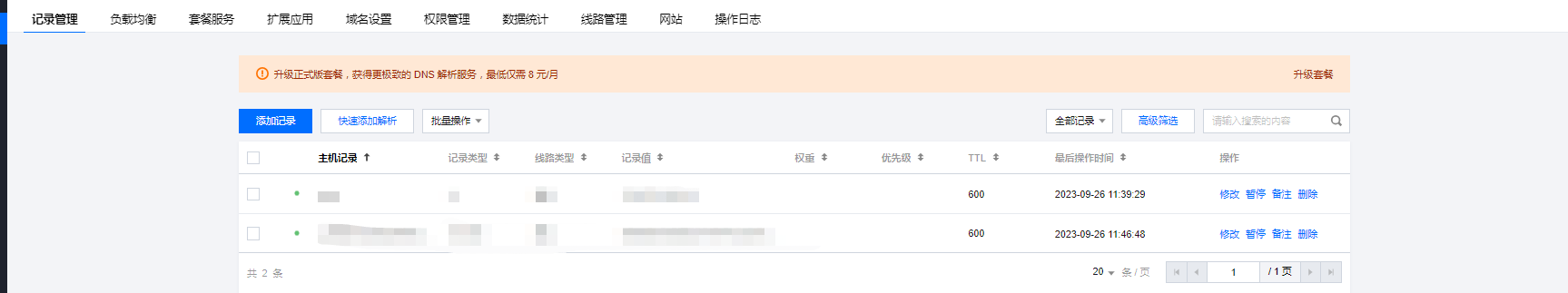 1、登录 DNSPod 管理控制台 快速添加解析。如下图所示:
