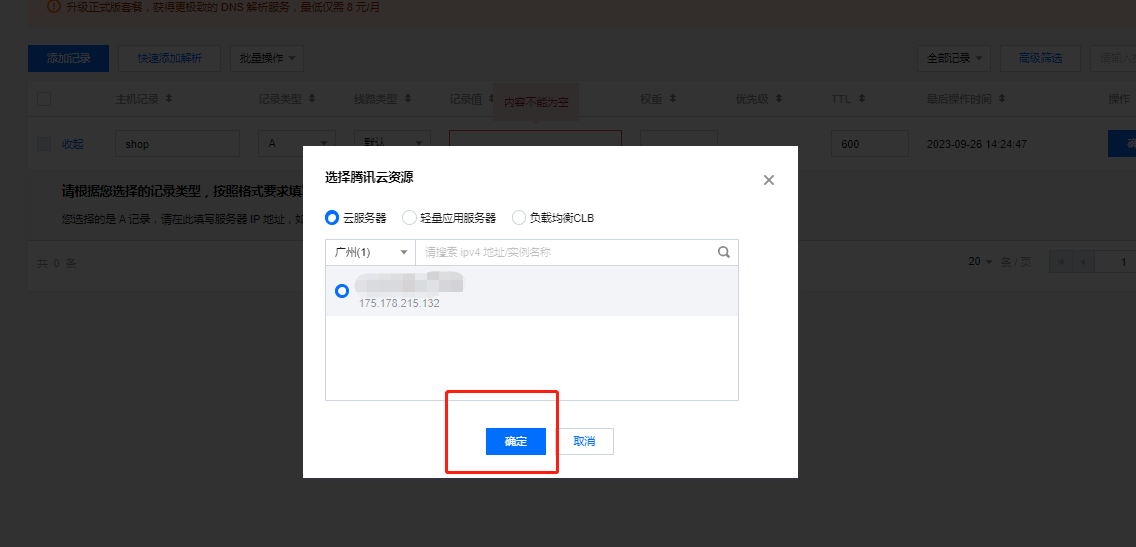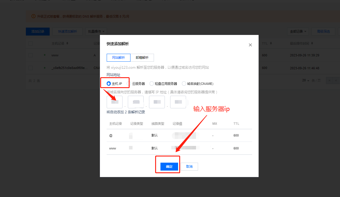 2.2解析到其他的服务器--快速添加解析---输入对方服务器的ip--